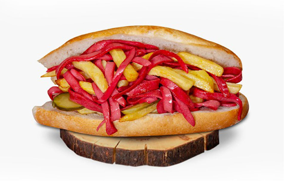 Kaşar peyniri, sucuk, domates, turşu, ketçap, mayonez