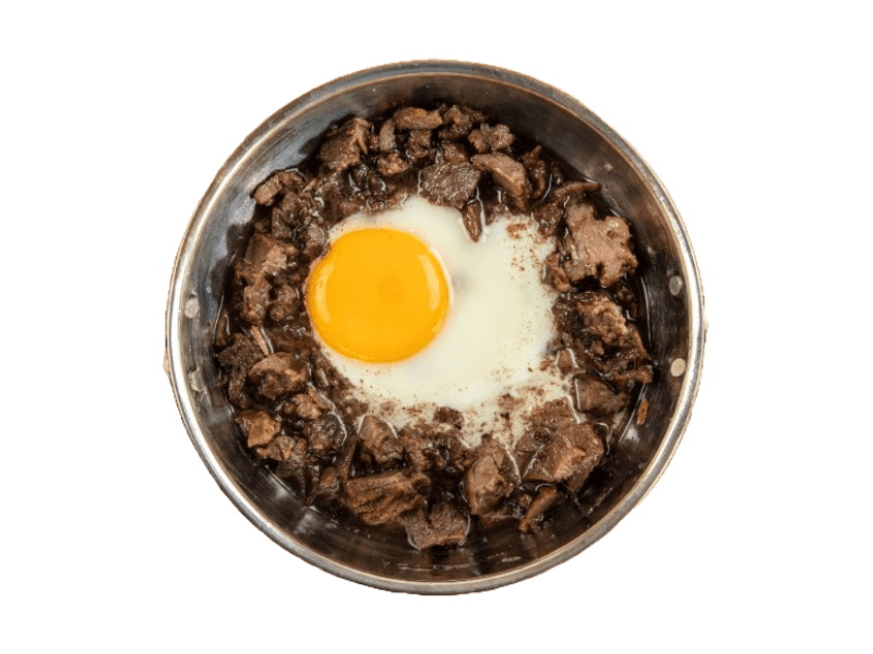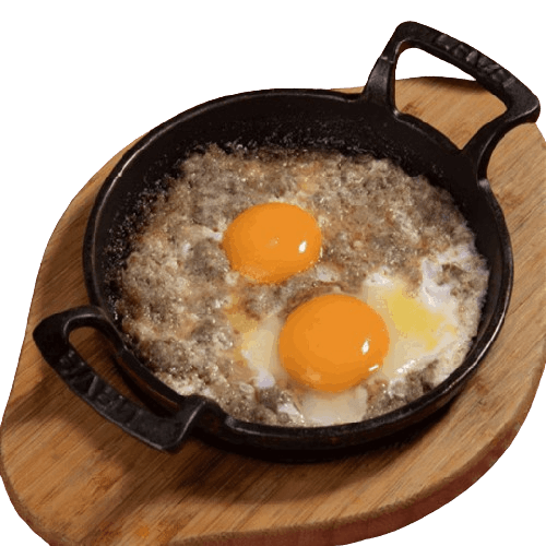 Yumurta, kavurma, kaşar peyniri, tereyağı, ekmek